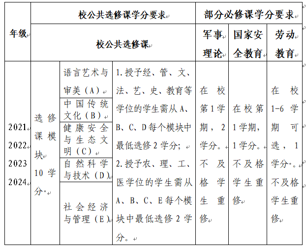 (二)校公共选修课及部分必修课的学分要求: