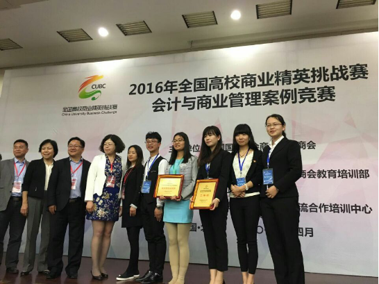 2016年4月8-10日,经过激烈的角逐,在北京对外经济贸易大学举办的2016年第三届全国高校会计与商业管理案例竞赛成绩揭晓,由我校经济与管理学院财务管理专业底阳阳、翟少红老师指导,底阳阳老师领队,17届财管专业马思雨、韩奕、李佳琳,18届财管专业刘梦琪四位同学组成的“醉·美胡杨”队荣获大陆赛区总决赛二等奖,我校荣获大赛总决赛“最佳院校组织奖”。