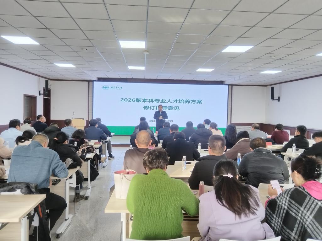 教务处围绕《塔里木大学2026版本科专业人才培养方案修订指导意见》,从指导思想、人才培养目标、基本原则、修订重点、专业人才培养目标实现矩阵、具体要求、工作要求这七个方面作详细汇报,重点解读了方案中“立德树人、产学研用协同、教育数字化、因材施教”四大基本原则,以及“夯实专业内涵、强化OBE理念、优化课程结构、深化产教融合、推进个性化培养”五大修订重点内容。