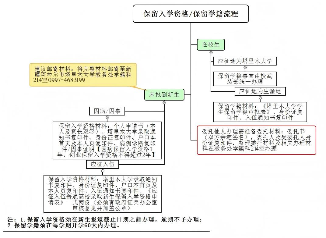 (因病、因事保留入学资格按照《塔里木大学保留入学资格审批表》要求办理)
